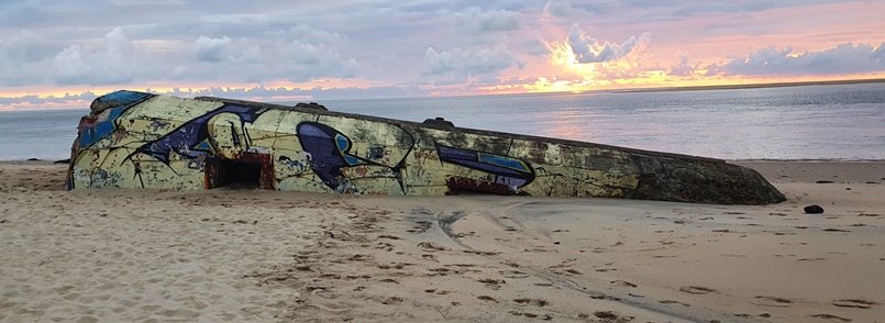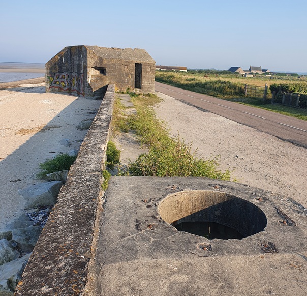 Und dann sind da überall noch die alten Bunker und Geschützfundamente! Nicht nur in der Normandie, sondern vom Atlantikwall die Überbleibsel an der gesamten Küste – siehe auch Dune du Pilat.