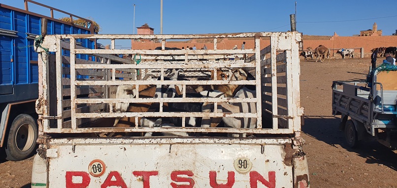 Natürlich gabs auch eine Metzgerzeile auf dem Markt, man konnte beim Schlachten zuschaun: Hühner, Truthahn, Ziege, Schaf und Hasen, alles nach muslimischer Art mit Kehlschnitt, ohne Betäubung – ich hoffe die Dame aus Frankreich hat das auch alles gesehen.