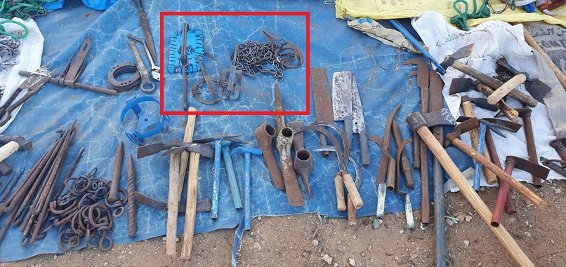 li. im Bild: auf einem Stuhl steht der Käufer und sagt welche der Tiere er kaufen will. Die werden dann von Verkäufer in das dahinterliegende Gatter gebracht. Manchmal muß ein Tier auch wieder zurück!