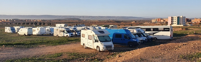 20km östlich von Guelmim liegt der kleine Ort Fask. 8 km südlich von Fask gibt eine heiße Quelle in der Wüste. Dort hab ich 3 Familien aus Deutschland mit ihren Wohnbussen getroffen. Wir sind abends zusammen gesessen, haben uns unterhalten. Später hab ich meinen Stuhl verräumt und bin schlafen gegangen.