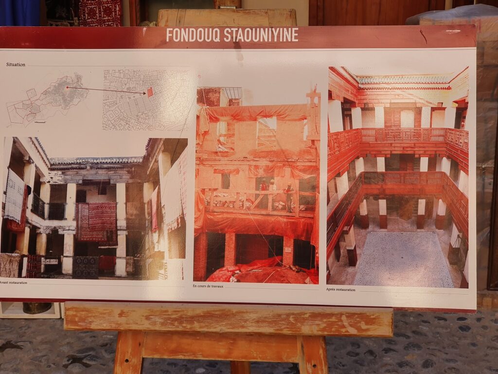 FES ist neben Marrakesch, Meknès und Rabat eine von 4 Königsstädten Marokkos und hat, mit über 8000 Gassen, die größte und, mit ca. 1200 Jahren, die älteste Medina, also Altstadt, in Nordafrika. Allerdings sind von den etwa 11.000 historischen Gebäuden ca. 4000 akut einsturzgefährdet, da die Fundamente Wasser ziehen und die Dächer undicht sind. Die Renovierungskosten sind so hoch, daß es für das Land nicht bezahlbar ist.
