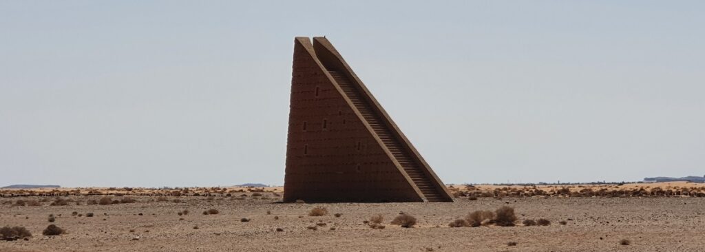 Ich erreiche die Himmelstreppe auf meiner Offroadtour. Ein Kreis aus Steinen umringt das Monument ab, im Abstand von ca 100m. Es sitzt ein Marokkaner da, hier im Nirgendwo, 20 Pistenkilometer in jede Richtung entfernt vom nächsten Dorf. Kein Stuhl, kein Tisch, kein Sonnenschutz. Von anderen Reisenden hab ich erfahren, daß er das Monument bewacht und den Eintritt kassiert. Ich hab das Auto abgestellt, Motor aus und bin erstmal sitzen geblieben und hab die Himmelstreppe auf mich wirken lassen: wer baut sowas hier an diesem Ort?