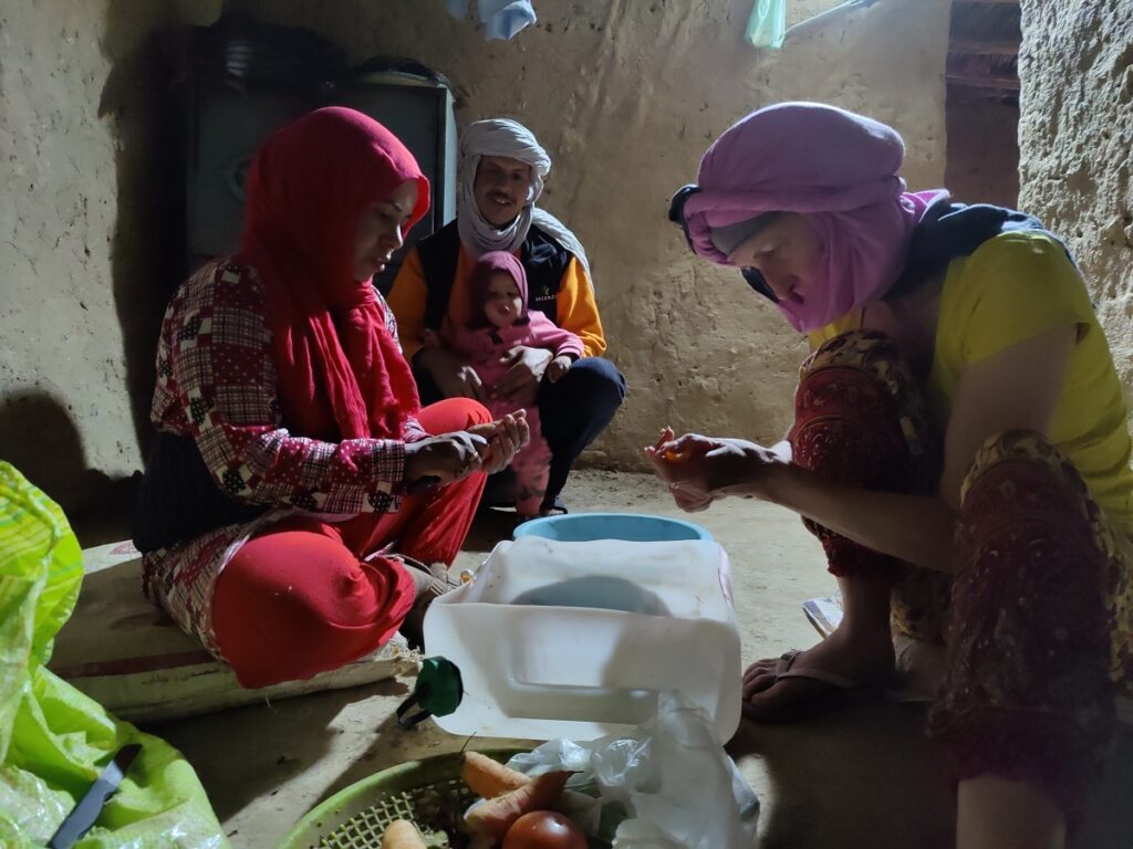 Der Marokkaner, Said heißt er, hat uns angeboten bei ihm und seiner Familie zuhause einen Tee zu trinken, um zu entspannen nach der Aktion. Said ist 34 Jahre alt, seine Frau 30 und die Tochter 1 Jahr. Zu Besuch war die Nachbarin und Freundin, 17Jahre mit ihrem 2 Jahre alten Sohn.