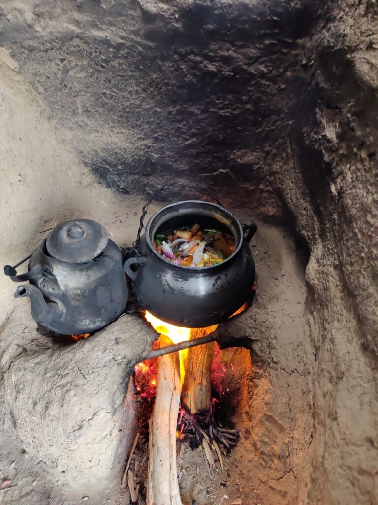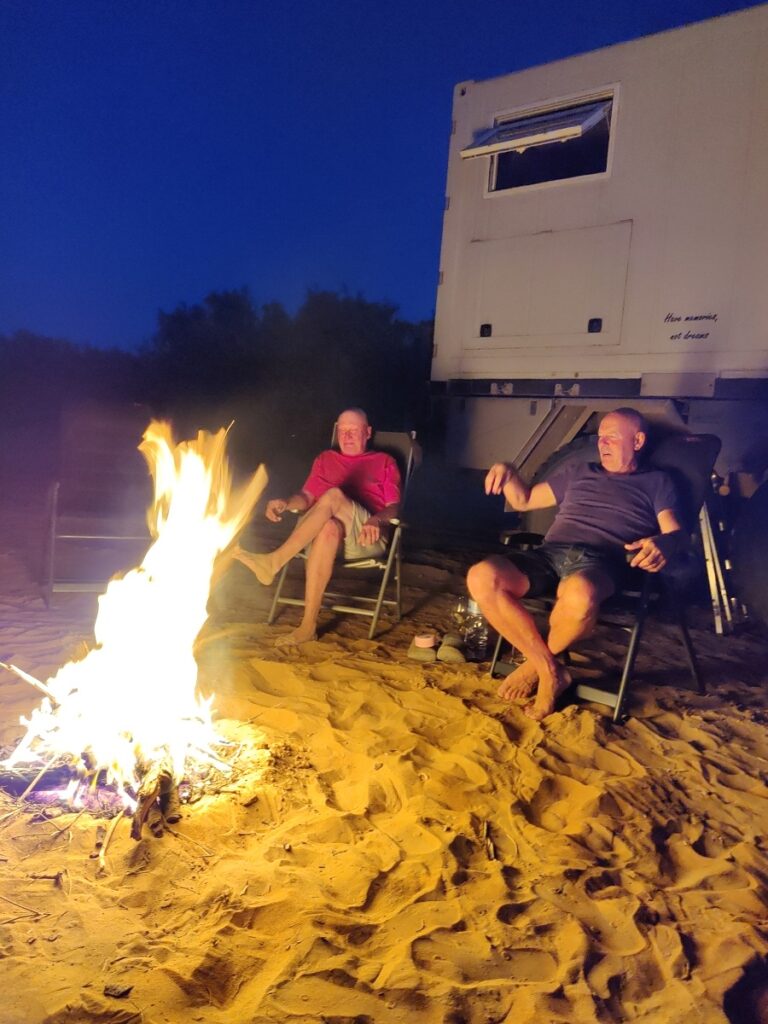 Im Schatten der nahegelegenen Bäume, wir sitzen am Boden, auf dem Feuer wird das Fleisch gegrillt, Mohammed zieht einen Topf nach dem anderen durch die Pfeife, liegt mittlerweile mehr als er sitzt und is nur noch am Lachen.