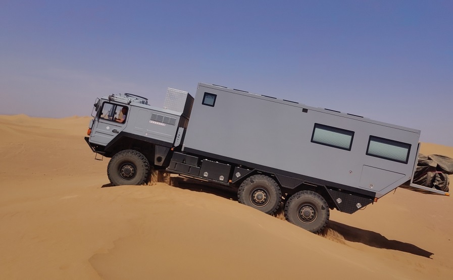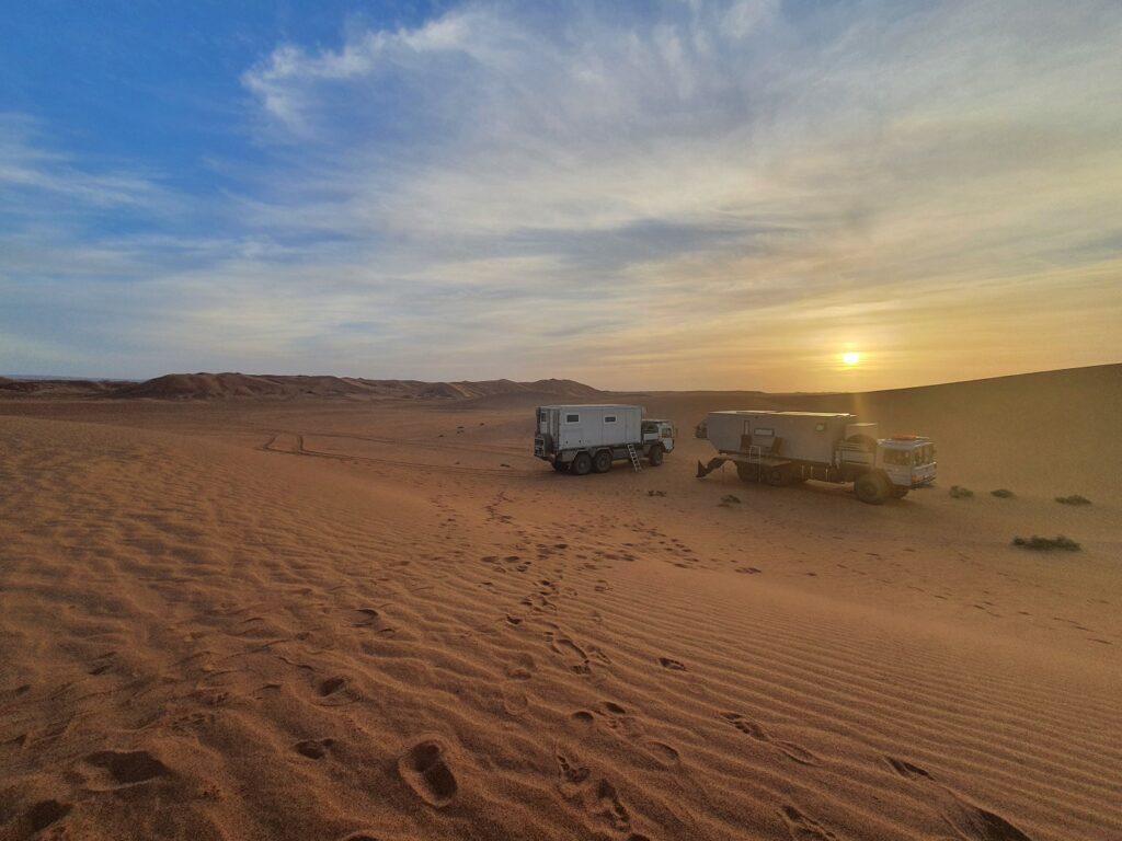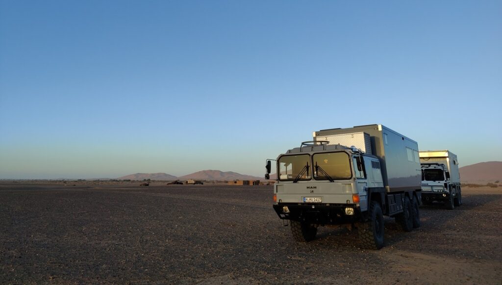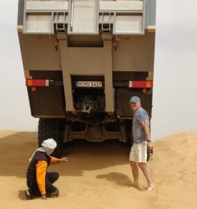 Eigentlich wollten Frank, Gabi und ich nur den Erg Chebbi umrunden, ca 40km, und ein bisschen im Sand spielen, mit den LKWs.