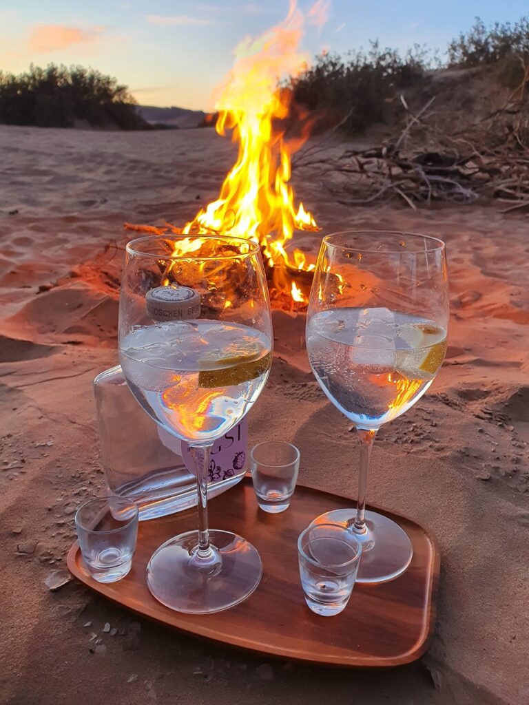 Ich hol meine letzten Reseven aus dem Auto, stell 5 Schnapsgläser auf, da interveniert Hamza „mein Bruder bekommt keinen!“