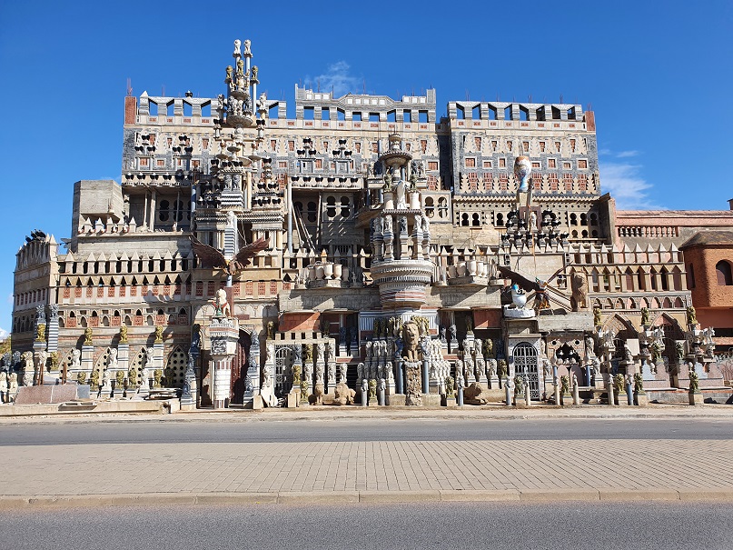 Zwischenzeitlich hat der Wachmann mir 5m vors Auto auf einem Tuch ein paar Sachen gelegt, die er aus Stein gefertigt hat und offensichtlich mir zum Kauf anbietet, gesagt hat er kein Wort.