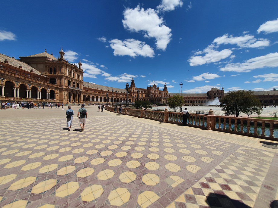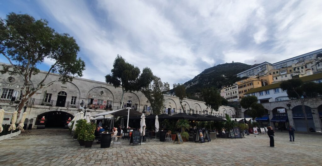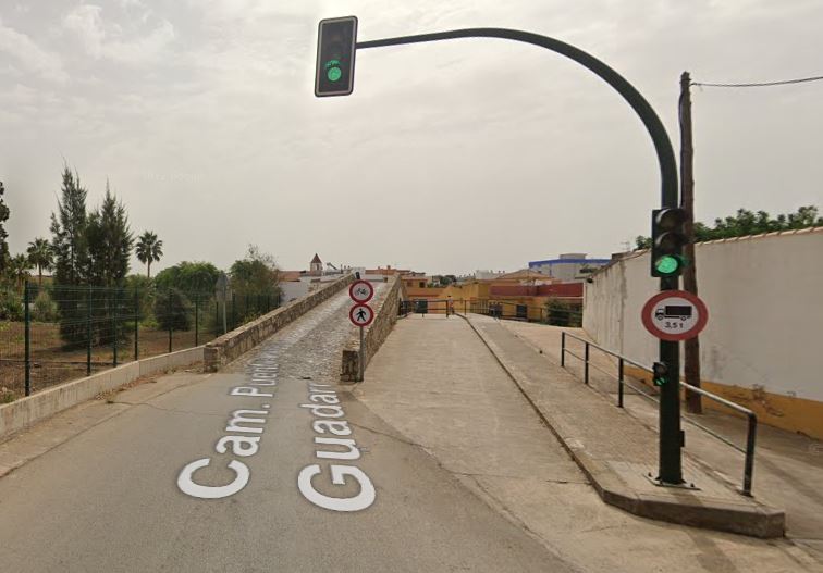 In San Roque, auf der Fahrt Richtung Gibraltar: Umdrehen oder Rückwärts waren beides keine Option, also hab ich mir überlegt, daß die Begrenzung auf 3,5t nur für die Fußgängerbrücke rechts und für die Steinbrücke links keine Gewichtsbeschränkung gilt.
