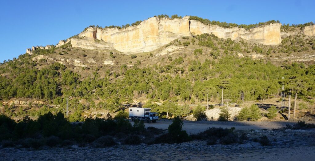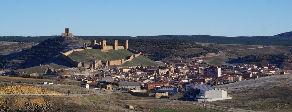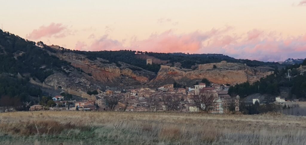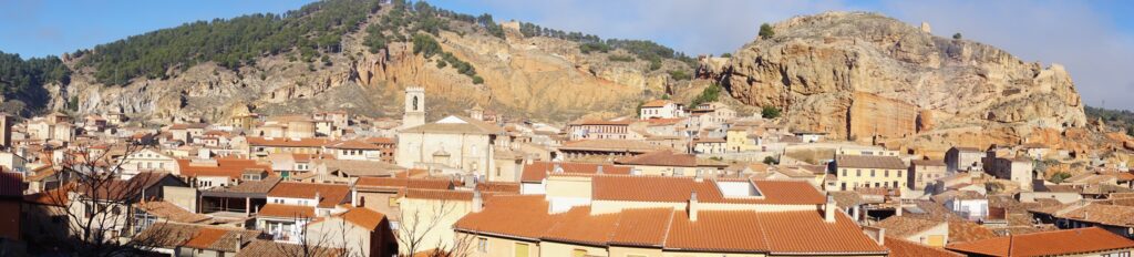 knapp 100km südwestlich von Saragossa, man komm aus nördlicher Richtung durch ein Tal, plötzlich weitet sich das Tal und der Ort präsentiert sich eng an den Fels geschmiegt.