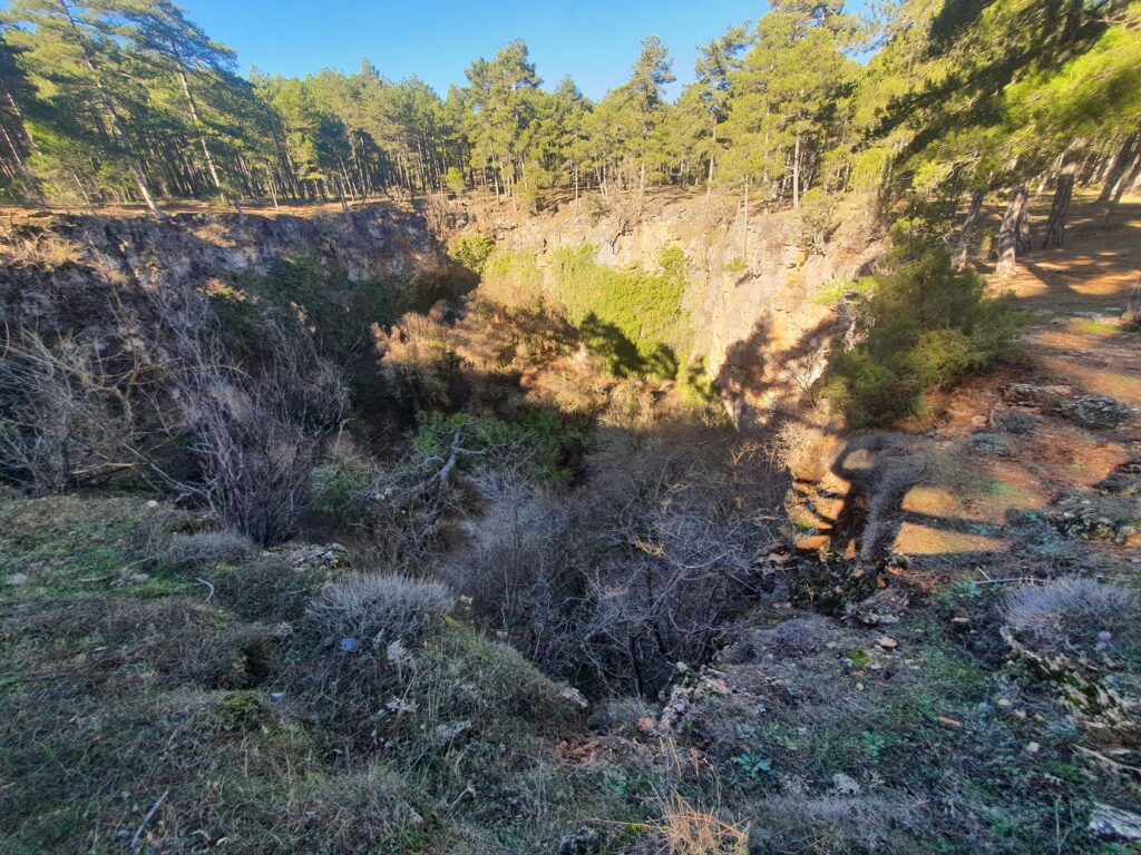 Im Gestein hat sich eine Höhle gebildet, die dann eingestürzt ist.