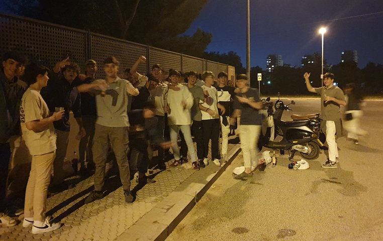 Gegen 19Uhr sind ein paar jugendliche aufgetaucht, jeder ausgestattet mit einer Plastiktüte, darin befindlich eine Flasche Schnaps, eine Flasche Cola oder vergleichbares und eine Tüte Eiswürfel von der Tanke!