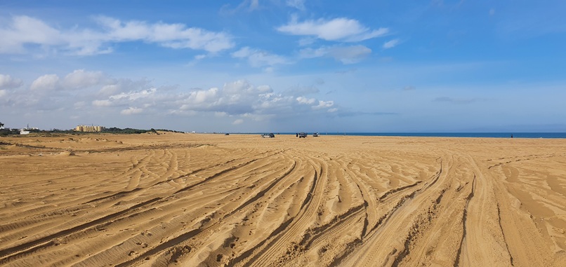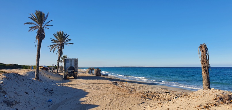 Am nächsten Tag hab ich den Standort gewechselt und steh jetzt im Norden von Hergla am Strand. 1 Stunde nach meiner Ankunft kam das gleiche Auto von der National Guarde wie in der Nacht zuvor. Sie waren bei den beiden anderen Autos hier am Platz, aber nicht bei mir – endlich Ruhe. Hat scheinbar gewirkt.