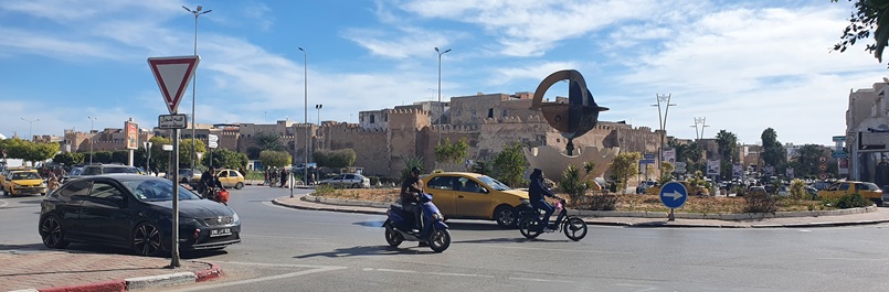 mit dem Auto Richtung Ausfahrt, dort wird der Pass und die Erlaubnis kontrolliert und damit bist du 2h später in Tunesien eingereist – welcome to tunesia
