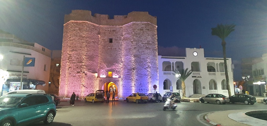 Ich steh am südlichen Ortsende von Hergla am Strand. Nachmittags kam die Polizei vorbei, klopft, stellt sich vor, frägt nachm Ausweis und ob ich hier übernachte, gibt mir noch die Notrufnummer. Ein kurzes und sehr freundliches Gespräch.