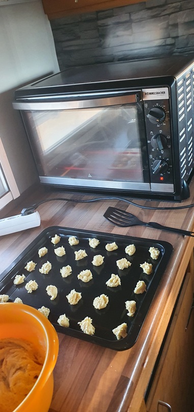 Vorsorglich hatte ich den Innenraum auf knapp 30° „vorgewärmt“, gekocht und gegessen haben wir dann doch drinnen bei mir – sogar ne Tischdecke hatten sie dabeigehabt! Der Stimmung hat das alles keine Abruch getan. Es war einfach fantastisch.