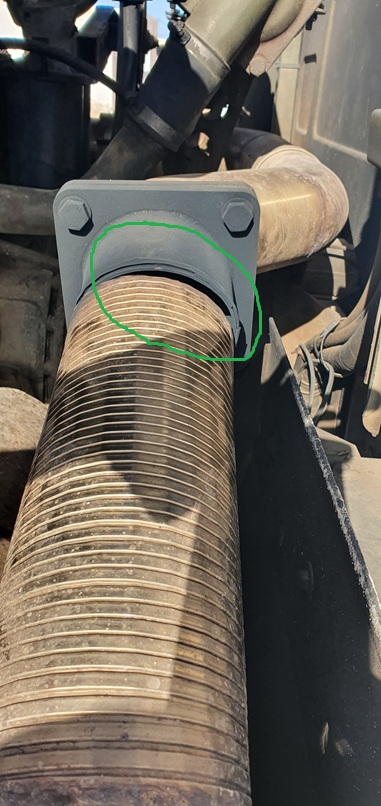 Der Onkel von Ghaith hat mir angeboten das Rohr wieder an den Flansch zu schweißen. Ich hatte aber die Befürchtung, daß es auf die Dauer wieder abreißen könnte. Ich sagte, daß mir eine Rohrschelle lieber wäre. Er befand meine Lösung für gut und so hat er mir eine schöne breite Rohrschelle gebaut, mit Kragendurchstellungen an den Verschraubungslöchern. Abgedichtet haben wir das dann noch mit einem hitzebeständigen Auspuffband, das ich dabei hatte. Innerhalb von 45 Minuten war ich wieder aus der Werkstatt draußen. Perfekt.